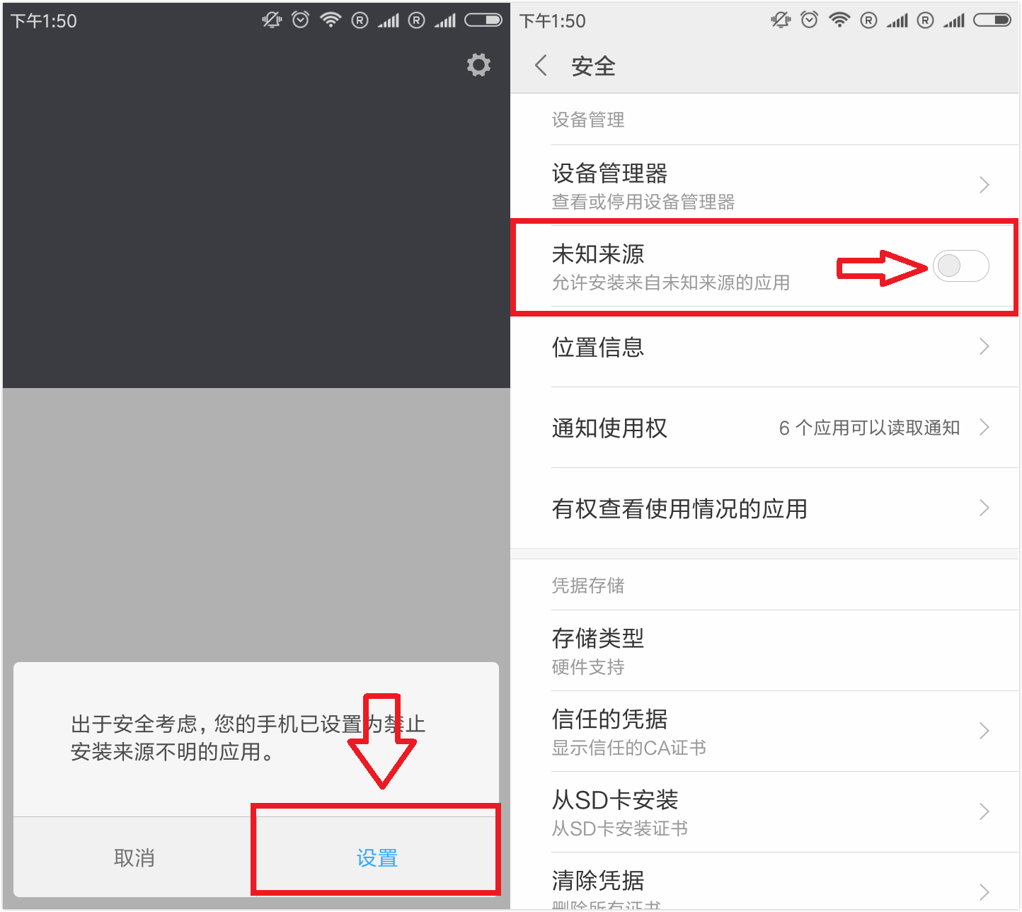 找到"未知来源", 并打开此功能