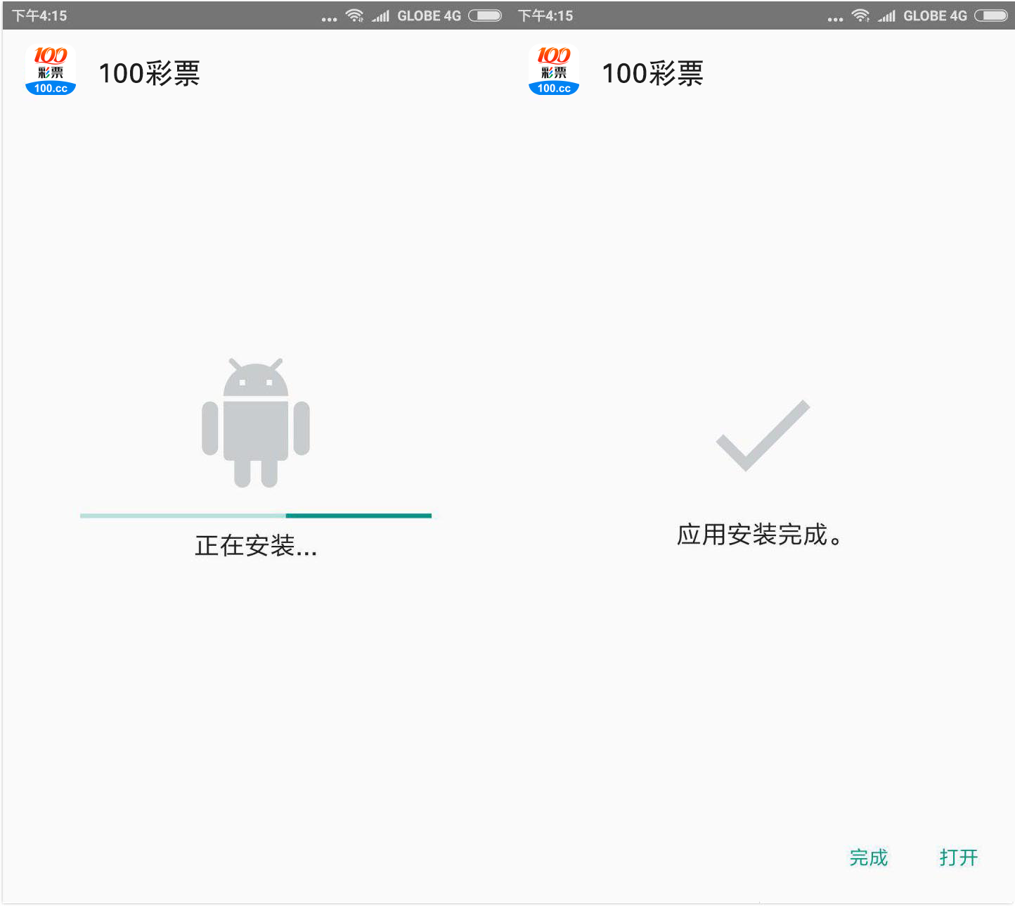 3. 等待安装完成之后, 即可正常打开"100彩票"APP