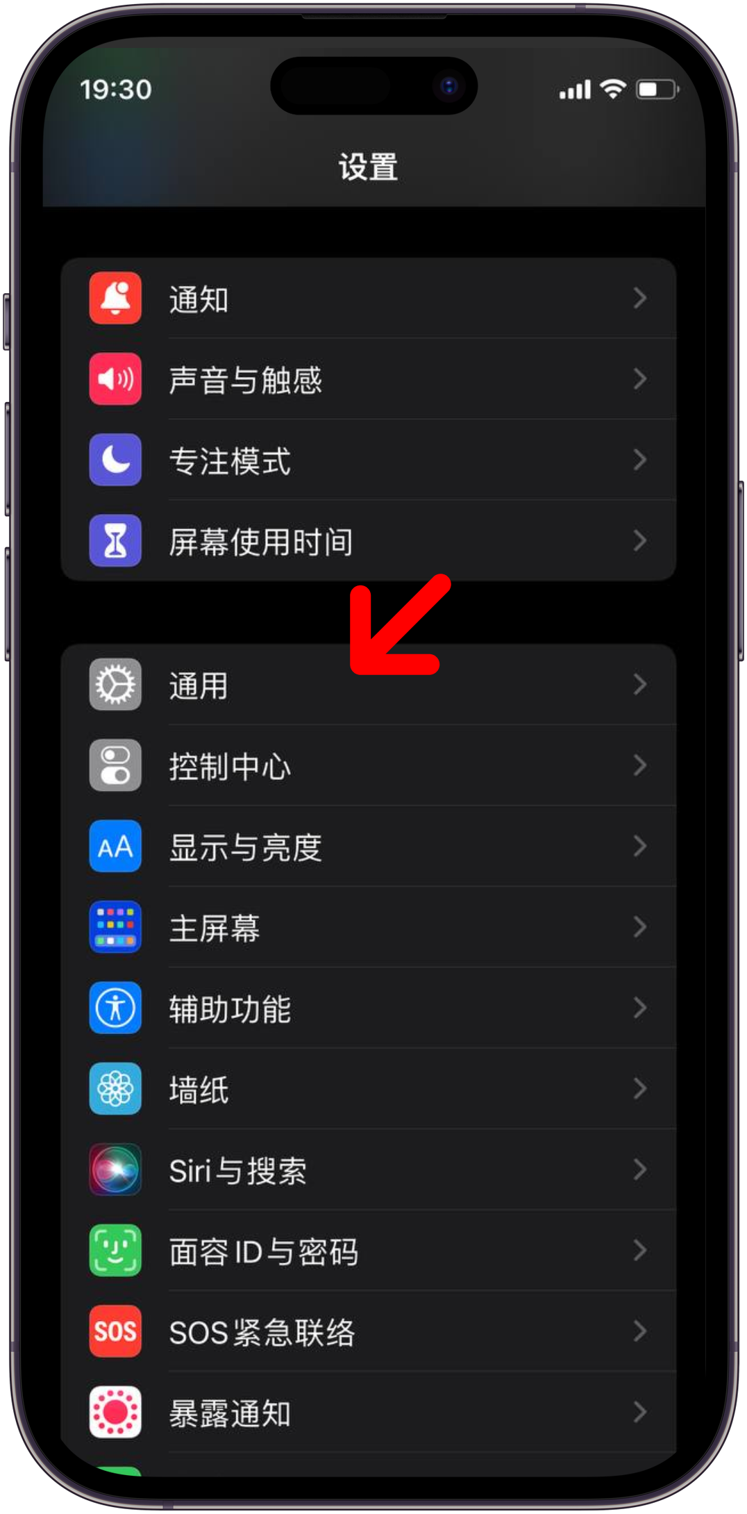 5. 进入手机设置, 点击"通用"