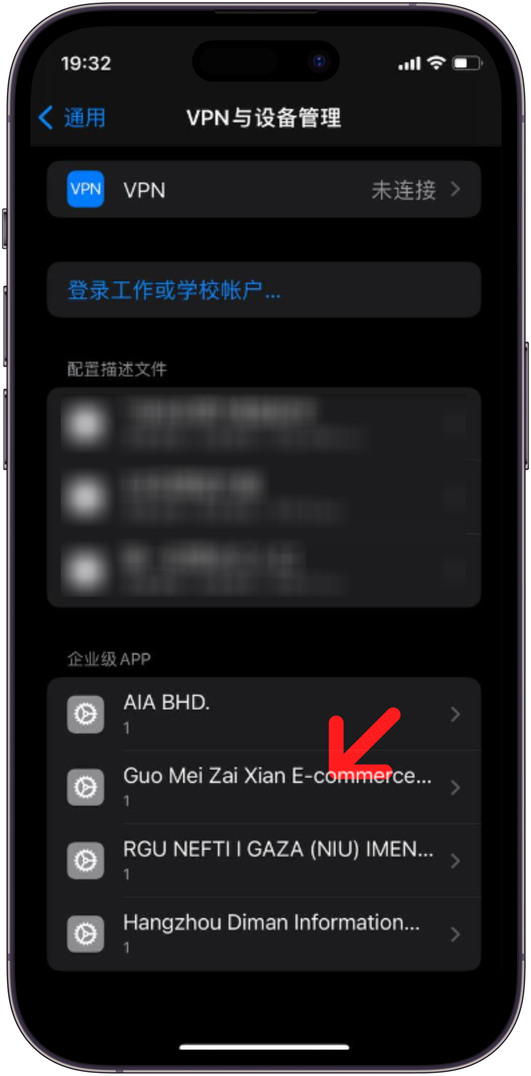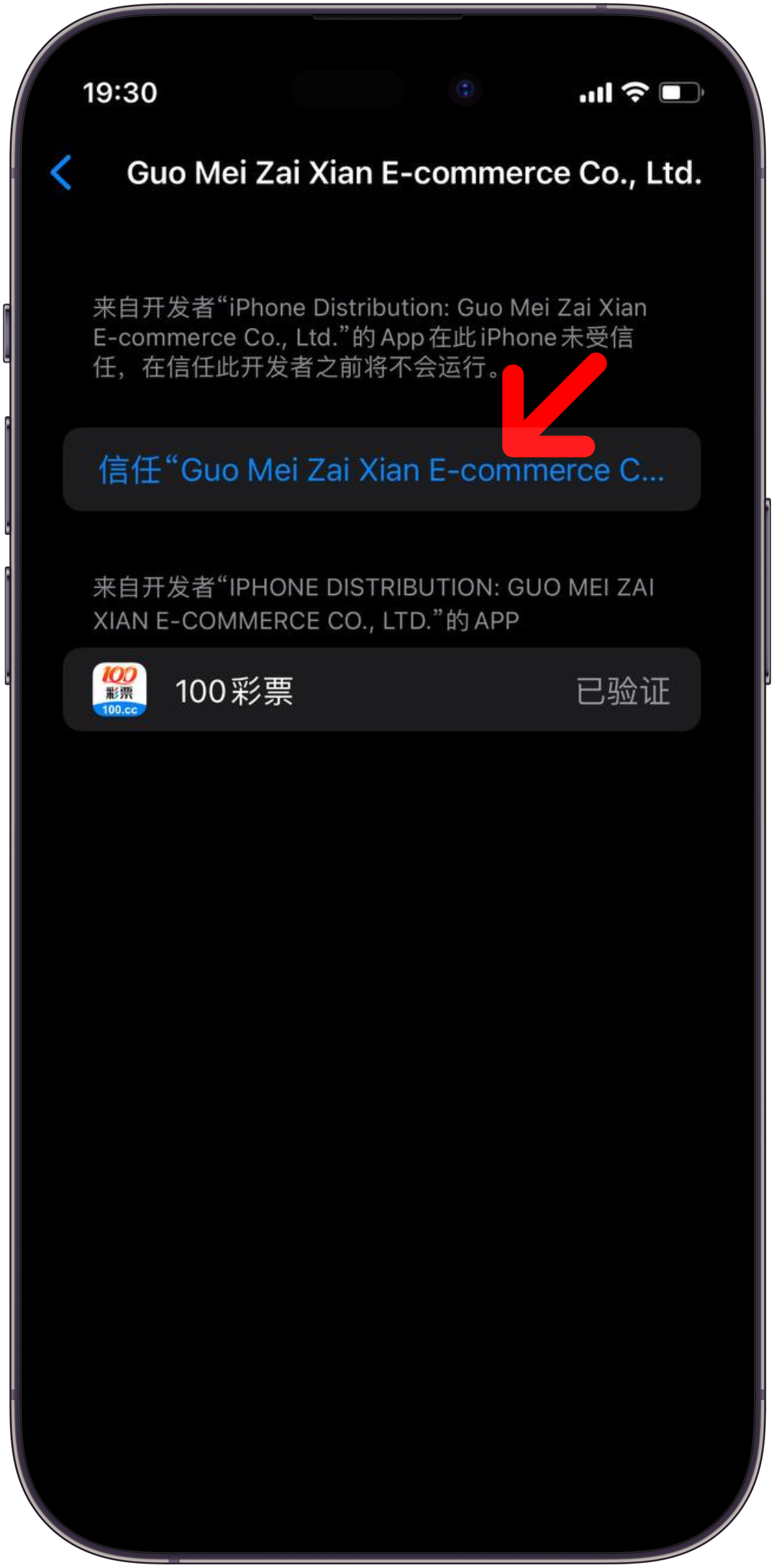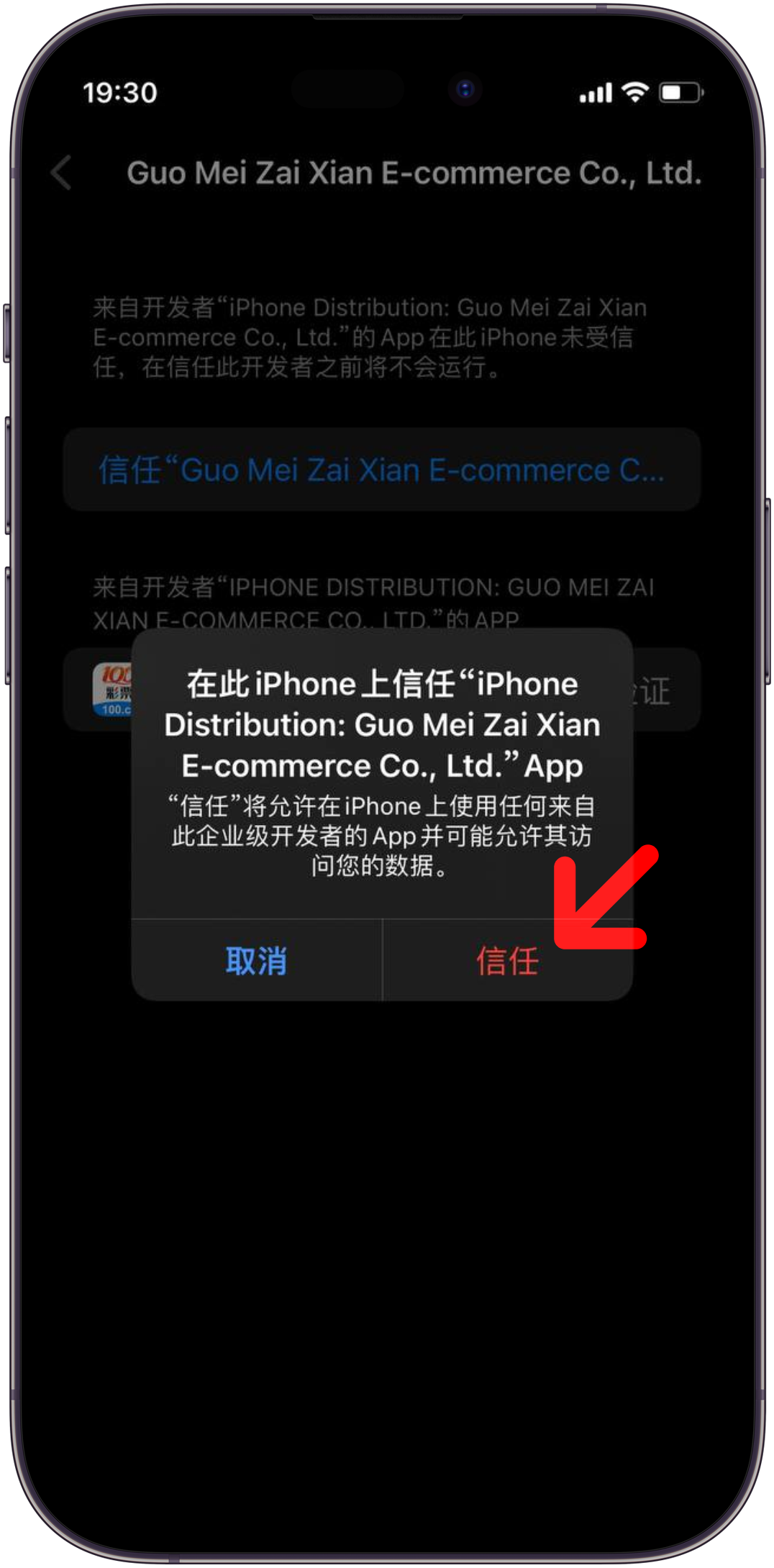 7. 点击企业级APP下方需要信任的选项